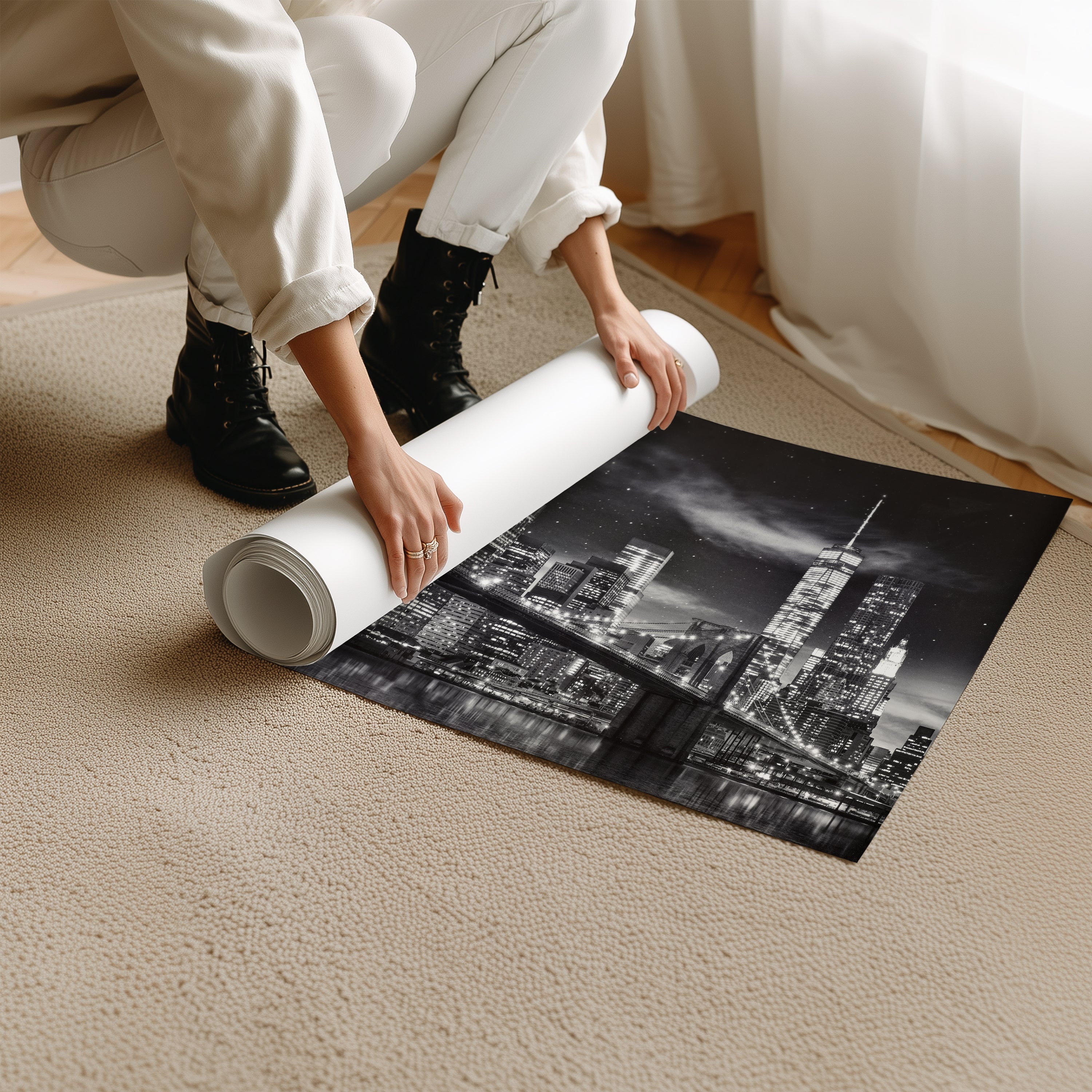 The monochrome tones and glowing lights make this artwork a bold addition to modern, industrial, or urban-inspired interiors. Whether styled in a living room, office, or loft space, it adds metropolitan sophistication and a touch of New York charm.