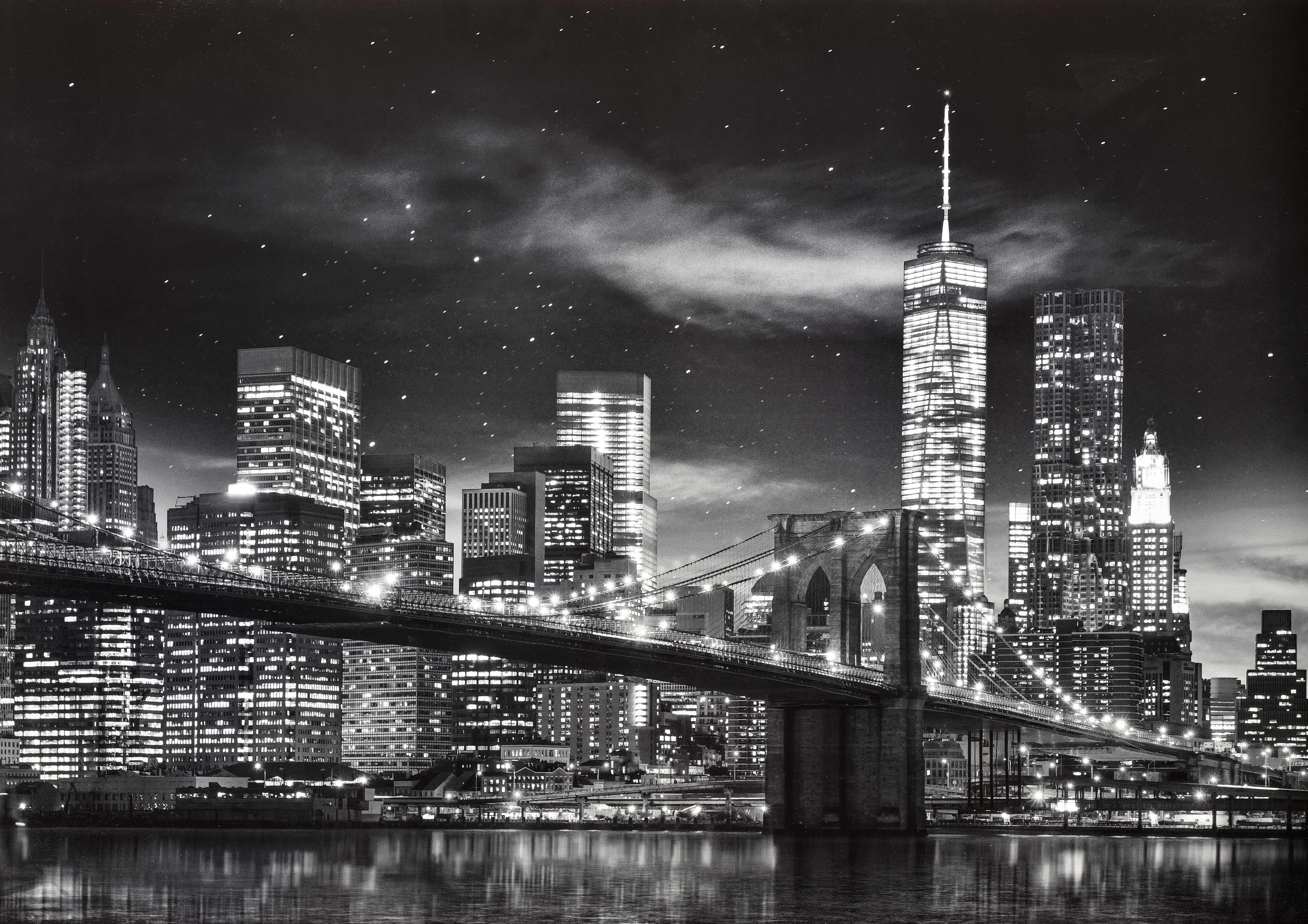 Boston Bridge and Freedom Tower is a striking black-and-white cityscape that captures the energy and drama of New York’s skyline at night. With the iconic Brooklyn Bridge in the foreground and the Freedom Tower illuminated among the glittering skyscrapers, this piece embodies the timeless allure of the city that never sleeps.
