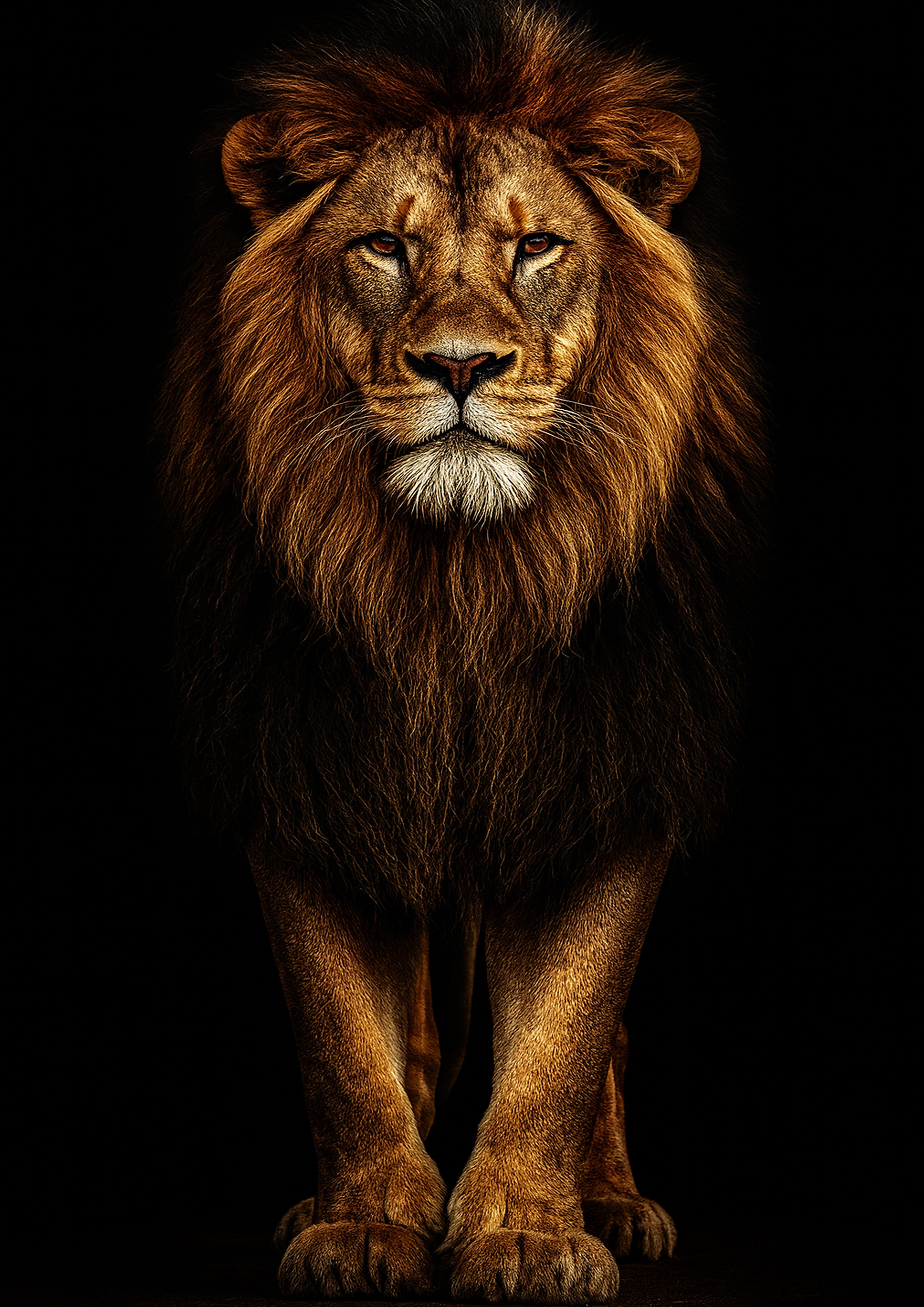 Wild Majesty is a commanding art print that captures the raw strength and regal presence of the lion, often called the king of the savannah. The rich tones of its mane and the piercing focus of its gaze stand out dramatically against a dark background, creating a portrait that feels both intimate and powerful.