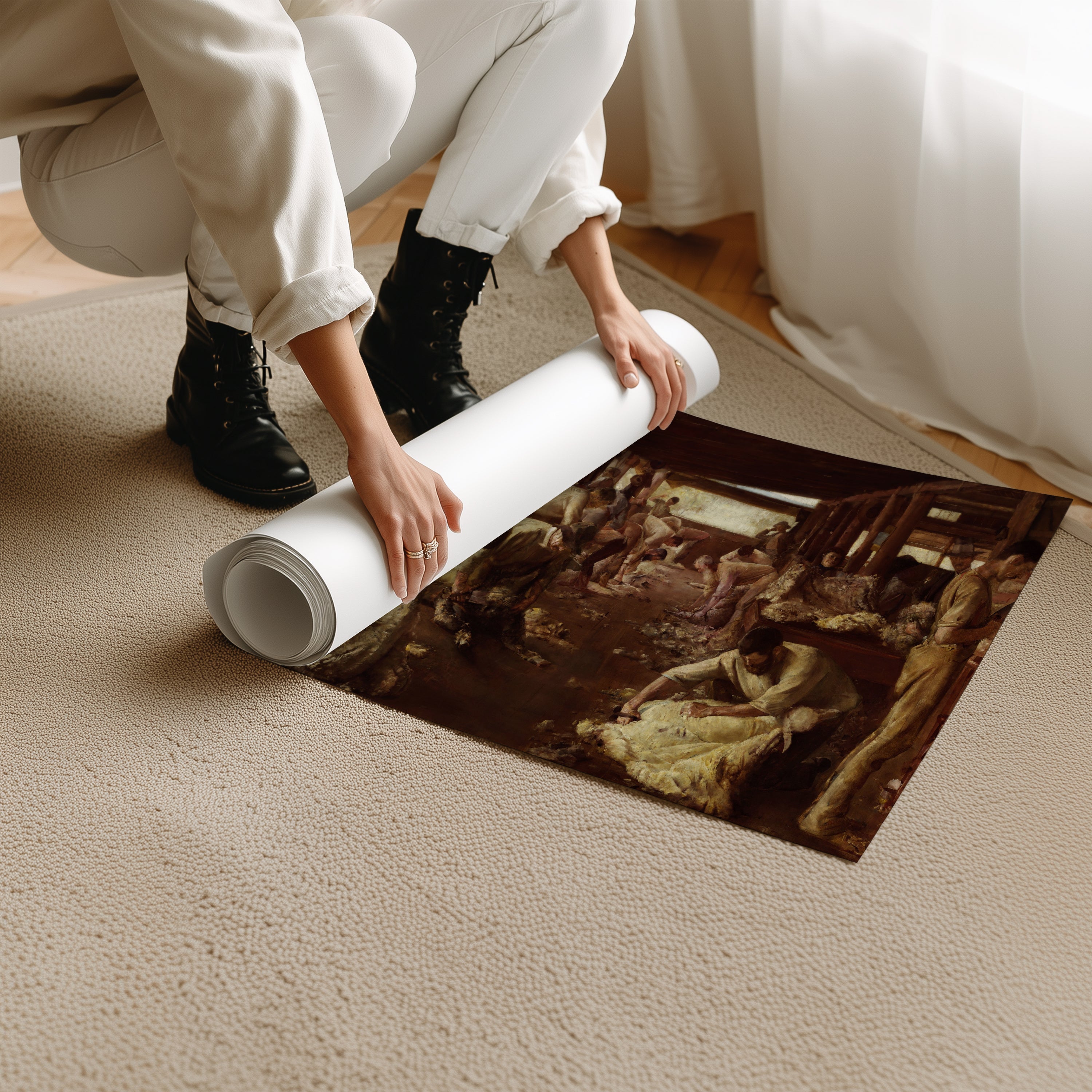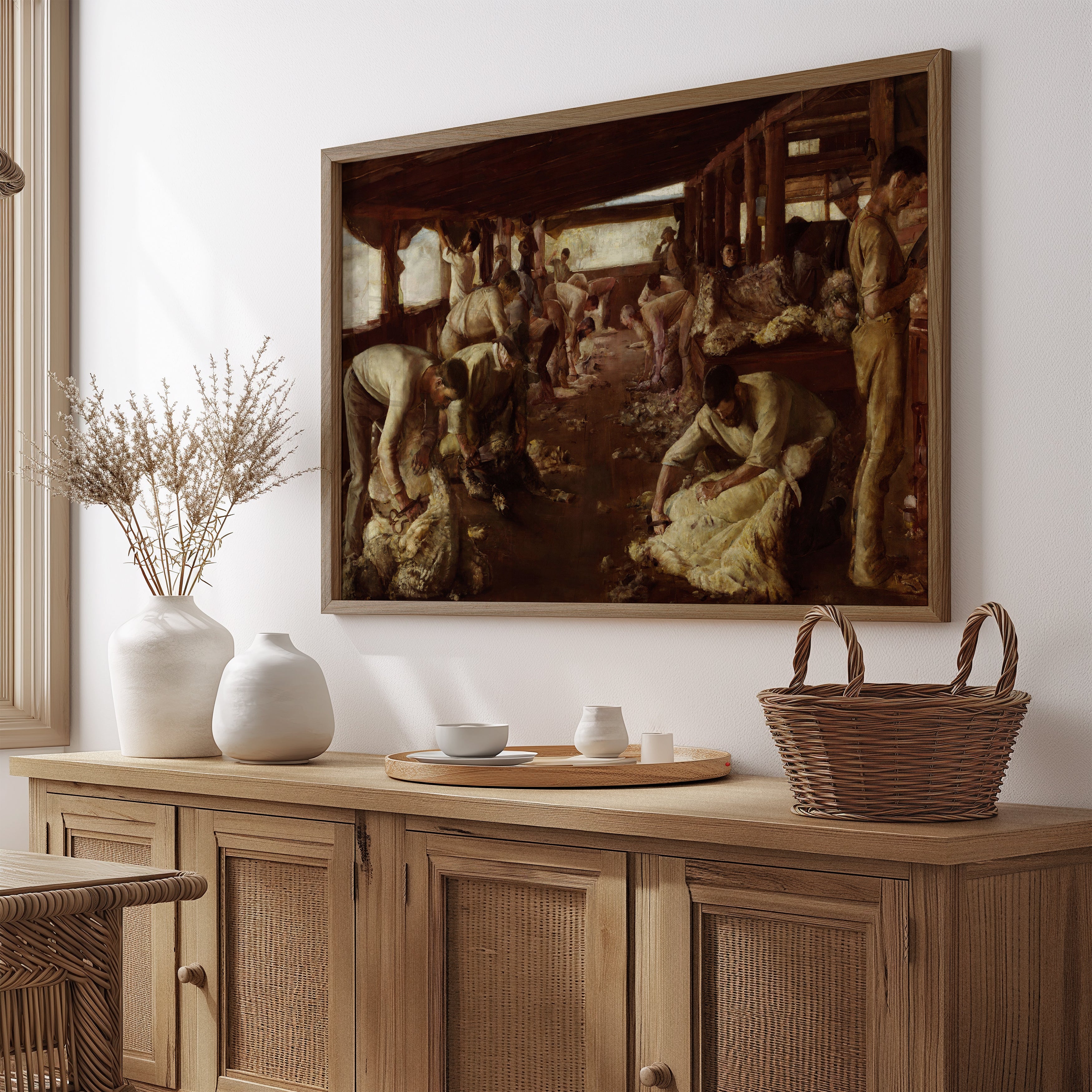 The Golden Fleece by Tom Roberts is one of Australia’s most celebrated masterpieces, depicting the intense, physical rhythm of life in a rural shearing shed. Painted in 1894, this iconic work captures the hard-working spirit of the Australian bush and the dignity of labour during the pastoral boom. The warm light and earthy palette convey both realism and emotion, making this piece a cornerstone of Australian art history.