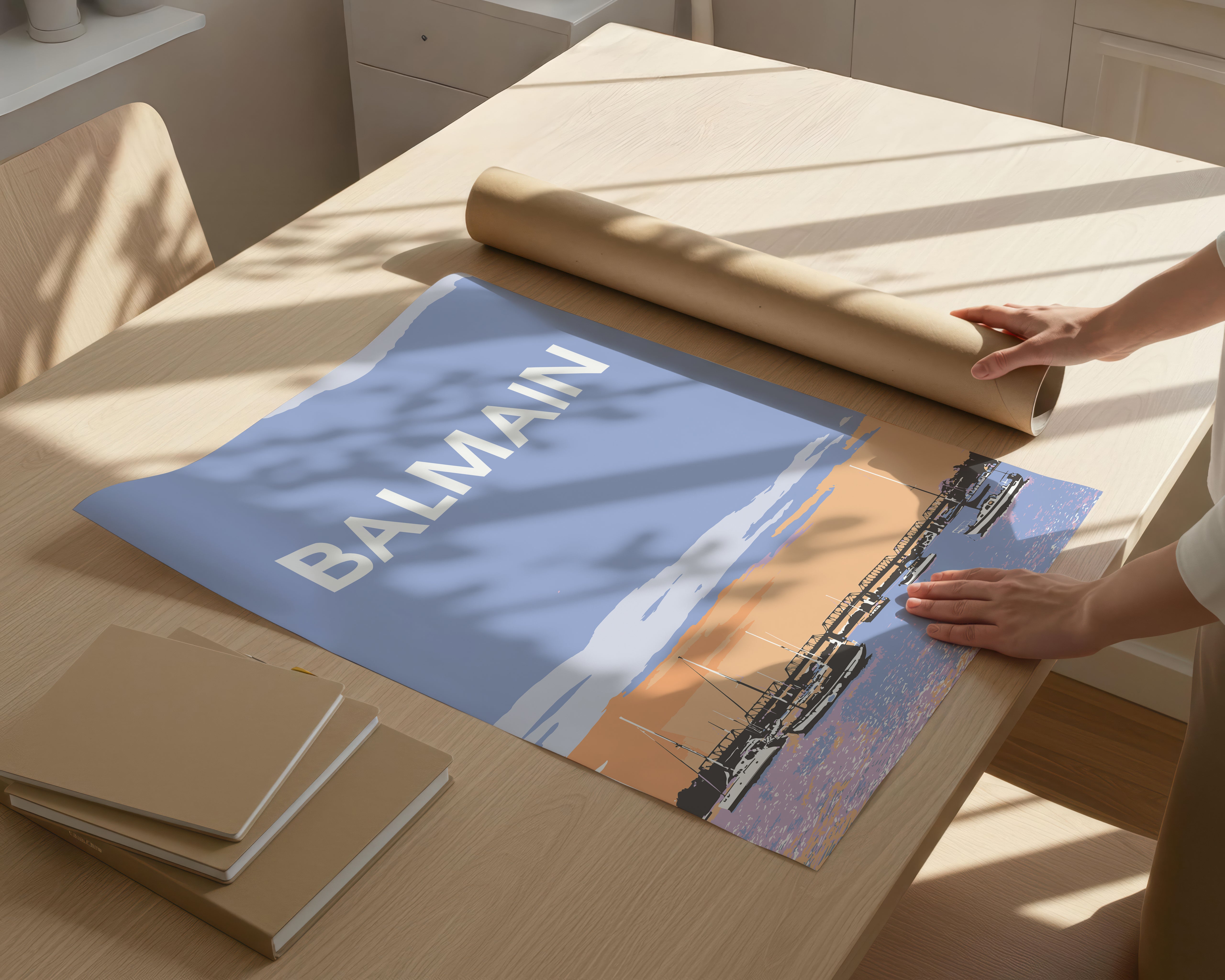 Balmain captures a calm harbour scene at sunset, with sailboats anchored beneath a soft pastel sky. The gentle reflections across the water create a relaxed, nostalgic tone that suits this beloved inner-harbour suburb of Sydney.