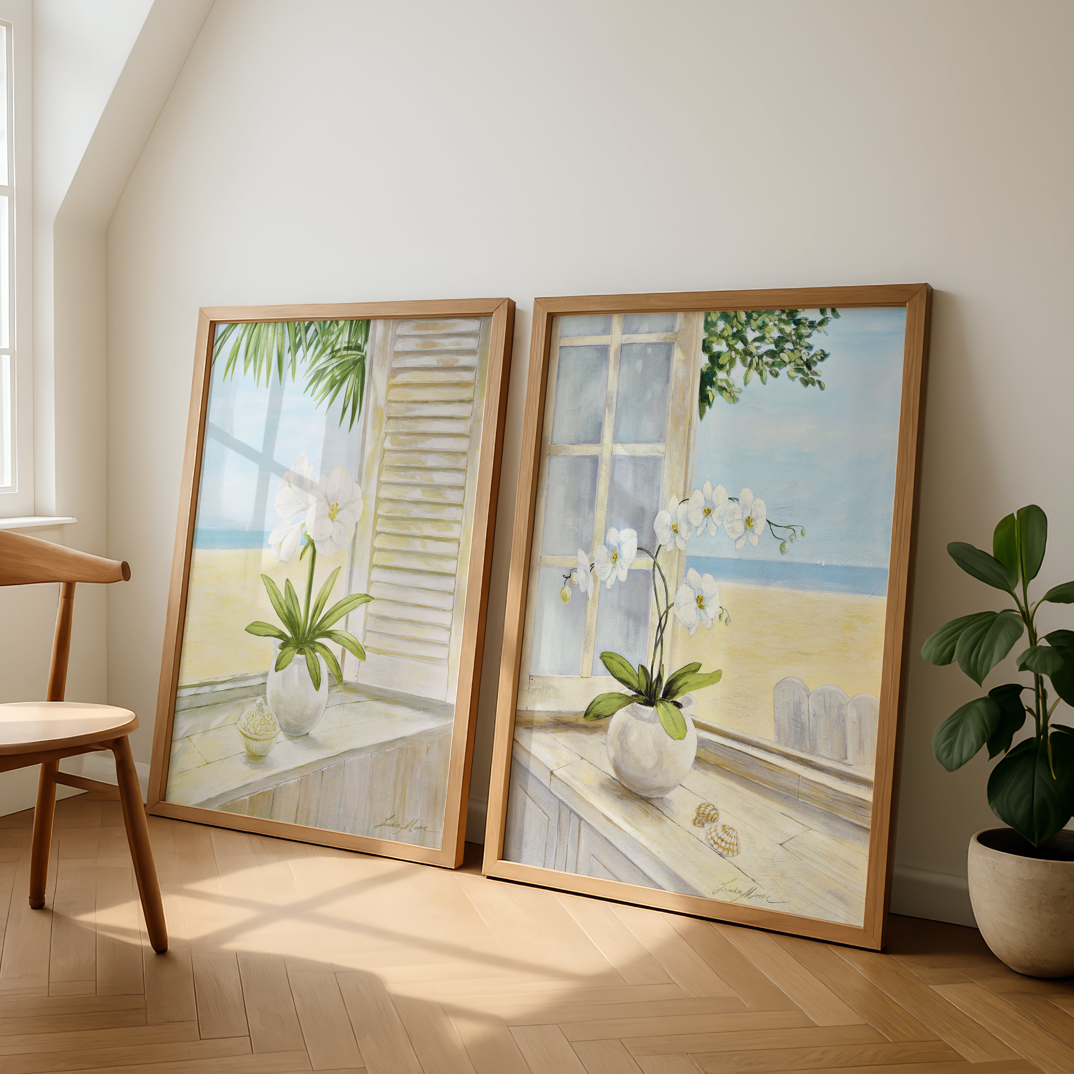 The pair works beautifully together or individually, offering a timeless coastal elegance that brings warmth and light into any home. Ideal for beach houses, coastal-inspired interiors, or anyone wishing to bring a sense of seaside tranquility indoors, these prints create a refreshing and uplifting atmosphere.