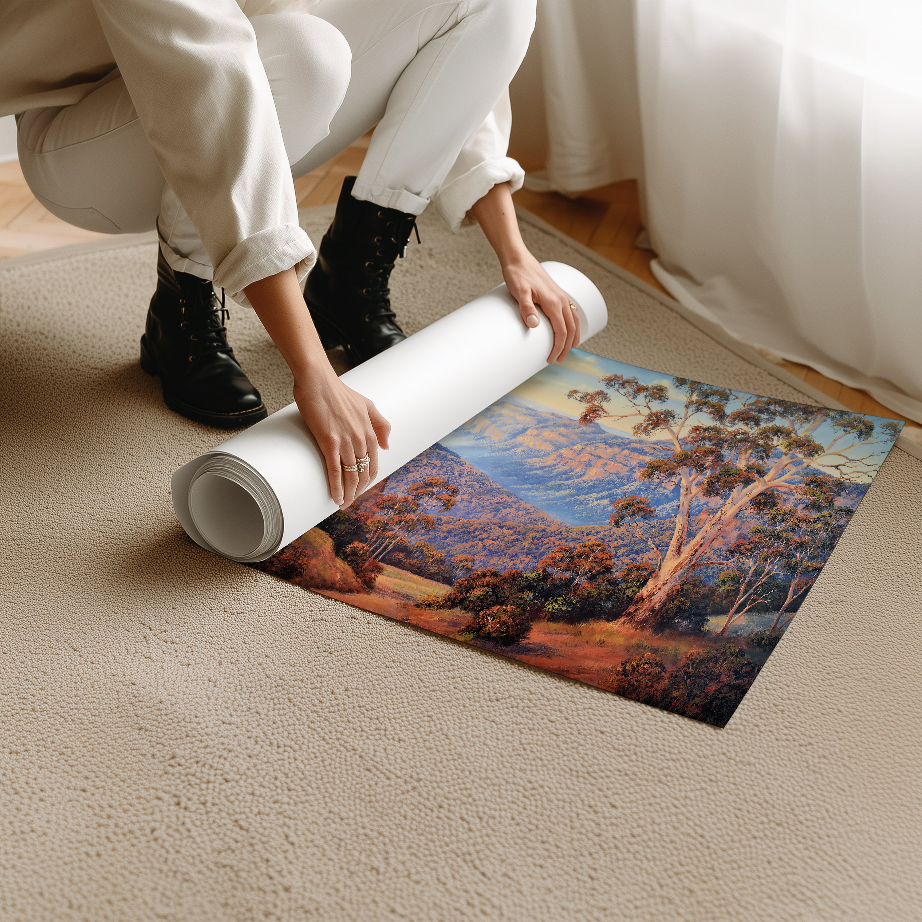 Bradley’s work evokes the serenity and scale of the Australian bush — a quiet, majestic world that feels both timeless and alive. This artwork brings a sense of calm and expansiveness to any space, making it perfect for homes that celebrate nature, travel, or the Australian spirit.