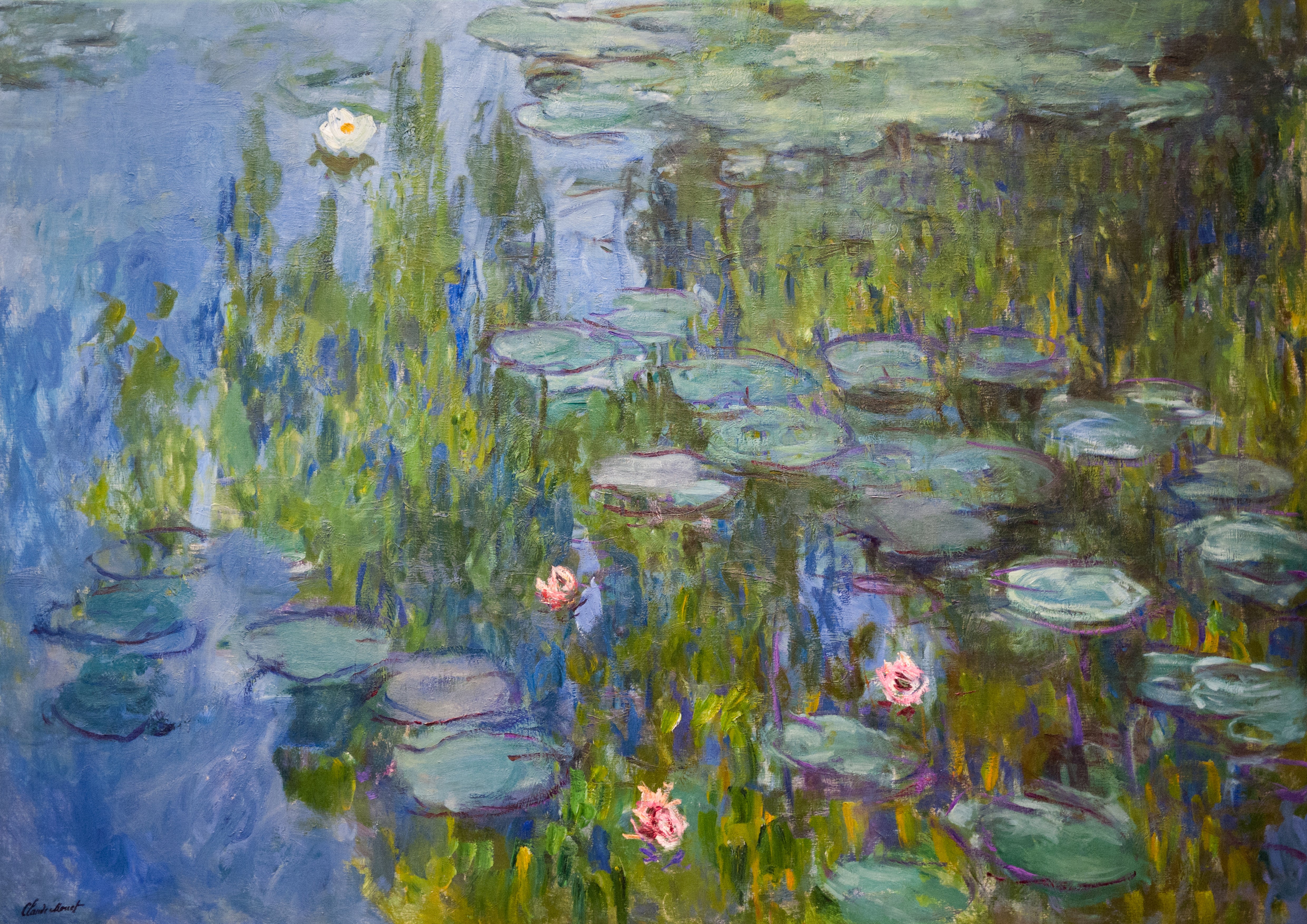 Seerosen Water Lilies is a soft, dreamlike impressionist print inspired by Claude Monet’s iconic garden series. Loose brushstrokes, rippling reflections, and delicate blooms float across cool greens and blues, capturing a moment of calm at the edge of the water.
