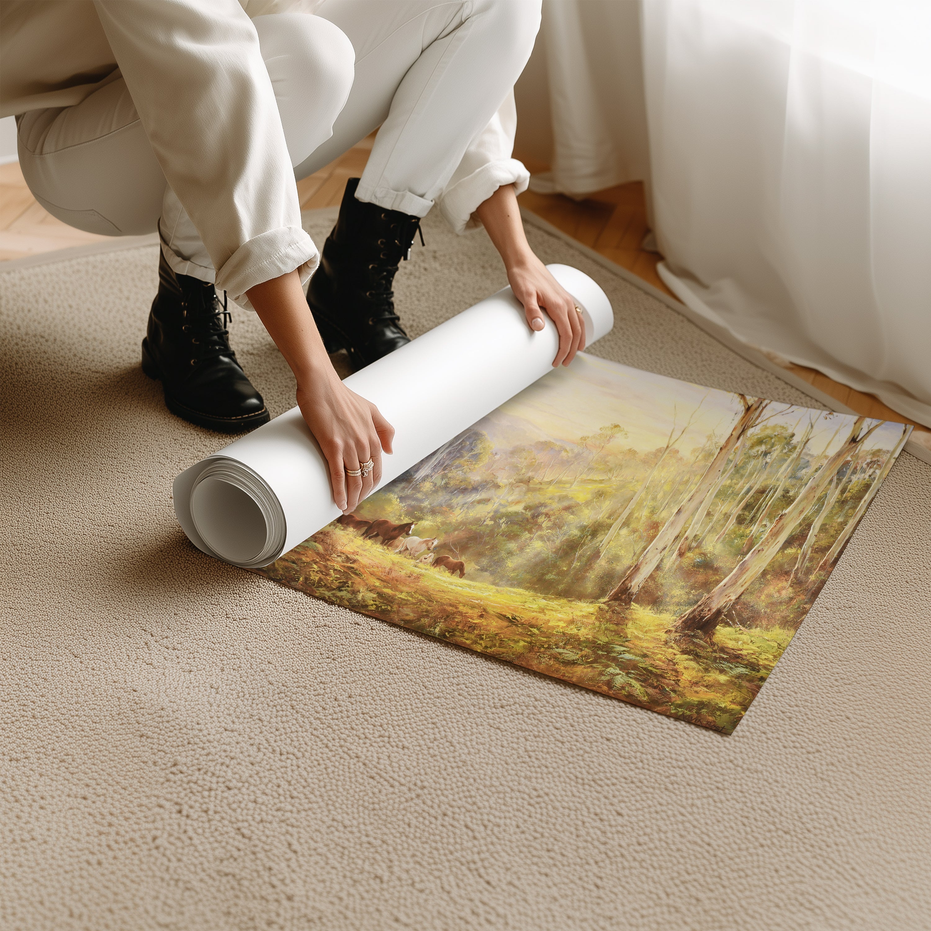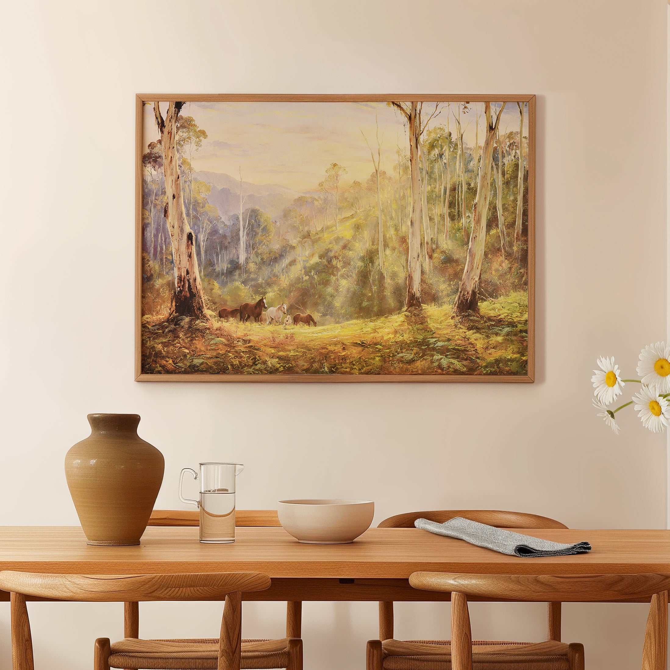 This timeless piece celebrates the quiet poetry of country life — where light filters through gum leaves, and nature feels infinite. Ideal for creating a calm, nostalgic atmosphere in living spaces, studies, or country homes, it brings a touch of heritage and tranquillity to any interior.